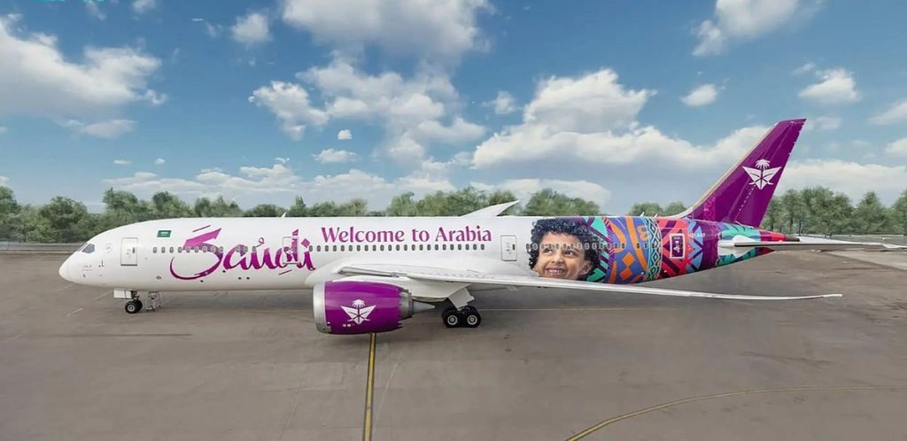 وستجوب طائرة السعودية من طراز (بوينج B787-9) وجهاتها الدولية المختلفة، حاملة رسائل ترحيبية ضمن حملة ترويجية متكاملة تسلط الضوء على الحراك السياحي المتنامي في مناطق المملكة على مدار العام، كما تعرض “السعودية” عبر أنظمة الترفيه على متن طائراتها أبرز الوجهات والفعاليات والمشاريع السياحية، على رحلاتها إلى أكثر من 100 وجهة في أربع قارات.