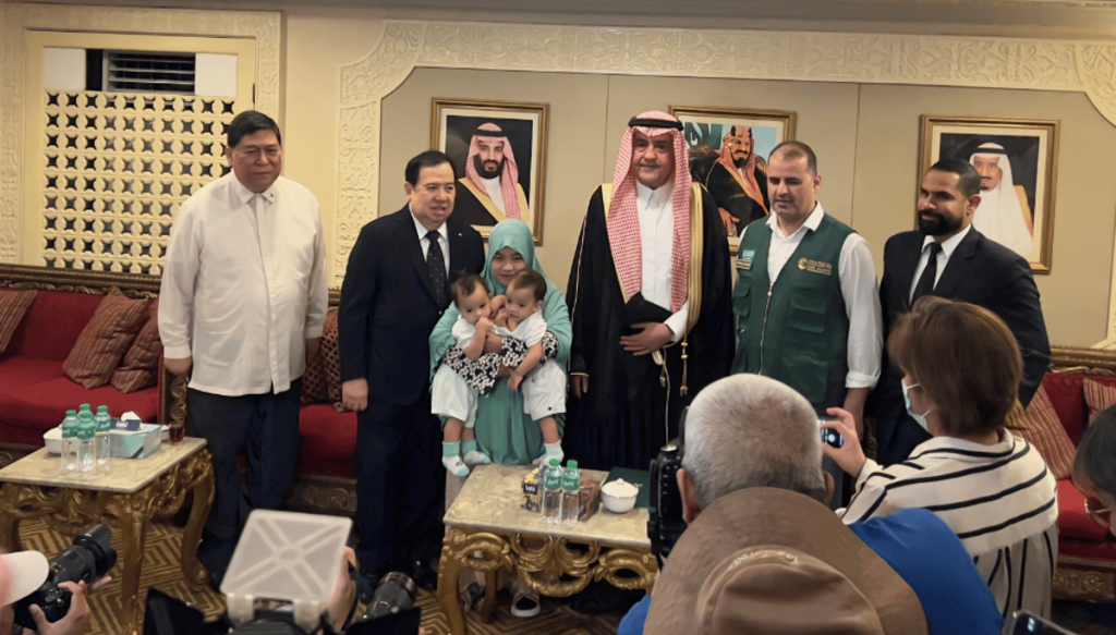 وفقاً للتوجيه الكريم من خادم الحرمين الشريفين الملك سلمان بن عبدالعزيز آل سعود- حفظه الله ورعاه– على إجراء عملية فصل التوأم السيامي الفلبيني (عائشة وأكيزا) في المملكة، استقبل السفير هشام بن سلطان القحطاني، التوأم السيامي وعائلتهما، قبل سفرهم جميعا إلى المملكة عبر طائرة الإخلاء الطبي الجوي التابعة للخدمات الصحية في وزارة الدفاع.