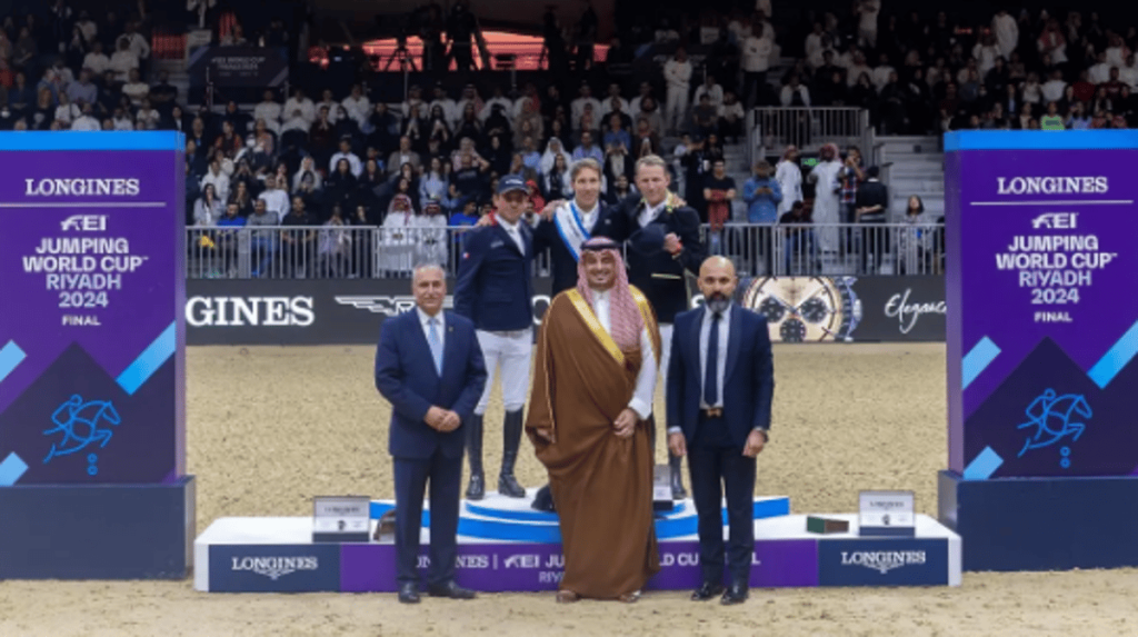 توج الأمير فهد بن جلوي بن عبدالعزيز نائب رئيس اللجنة الأولمبية والبارالمبية، بحضور رئيس الاتحاد الدولي للفروسية إنغمار دي فوس، الفارس السويدي هنريك فون إيكيرمان بلقب كأس العالم لقفز الحواجز على أرض مركز الرياض الدولي للمؤتمرات والمعارض في العاصمة الرياض، وذلك في اليوم الختامي من بطولة كأس العالم لقفز الحواجز والترويض 2024.