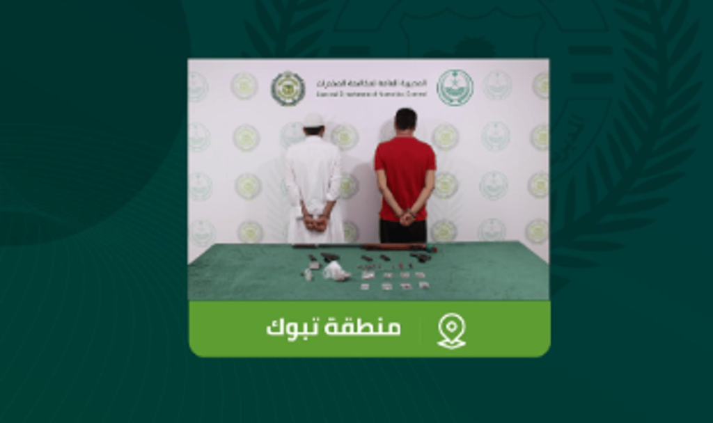 أعلنت المديرية العامة لمكافحة المخدرات، القبض على مواطنين بمنطقة تبوك لترويجهما مادتي الحشيش والإمفيتامين المخدرتين.