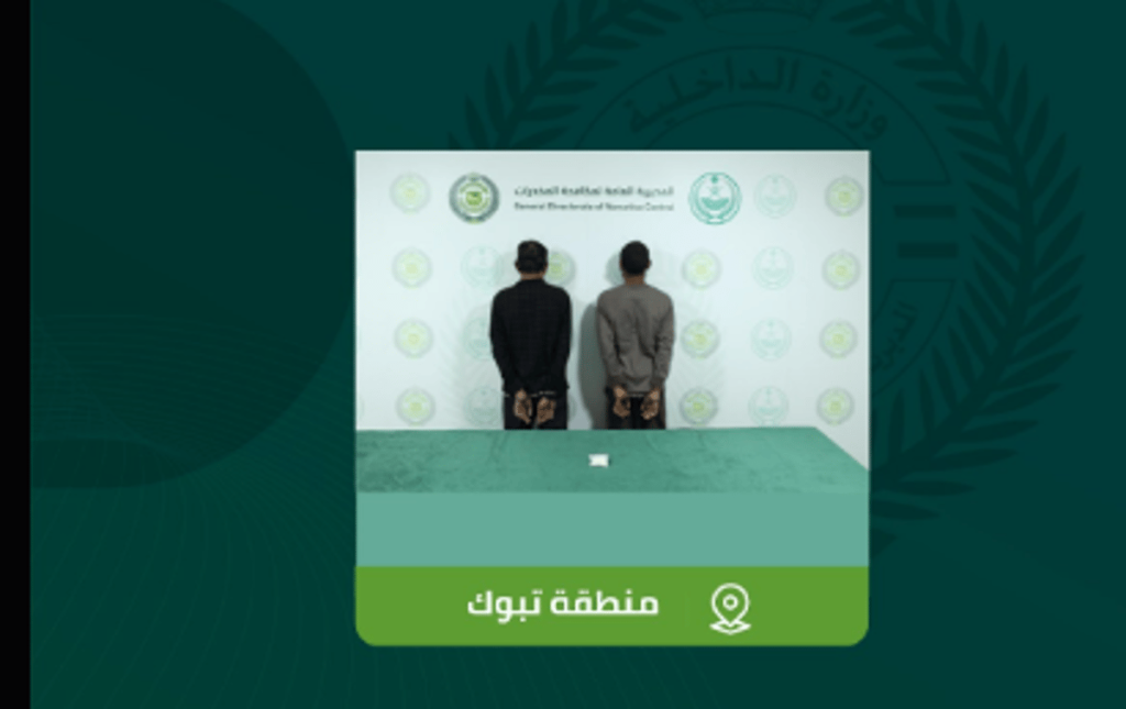 أعلنت المديرية العامة لمكافحة المخدرات القبض على مقيمين من الجنسية البنجلاديشية بمنطقة تبوك لترويجهما مادة الميثامفيتامين المخدر (الشبو).
