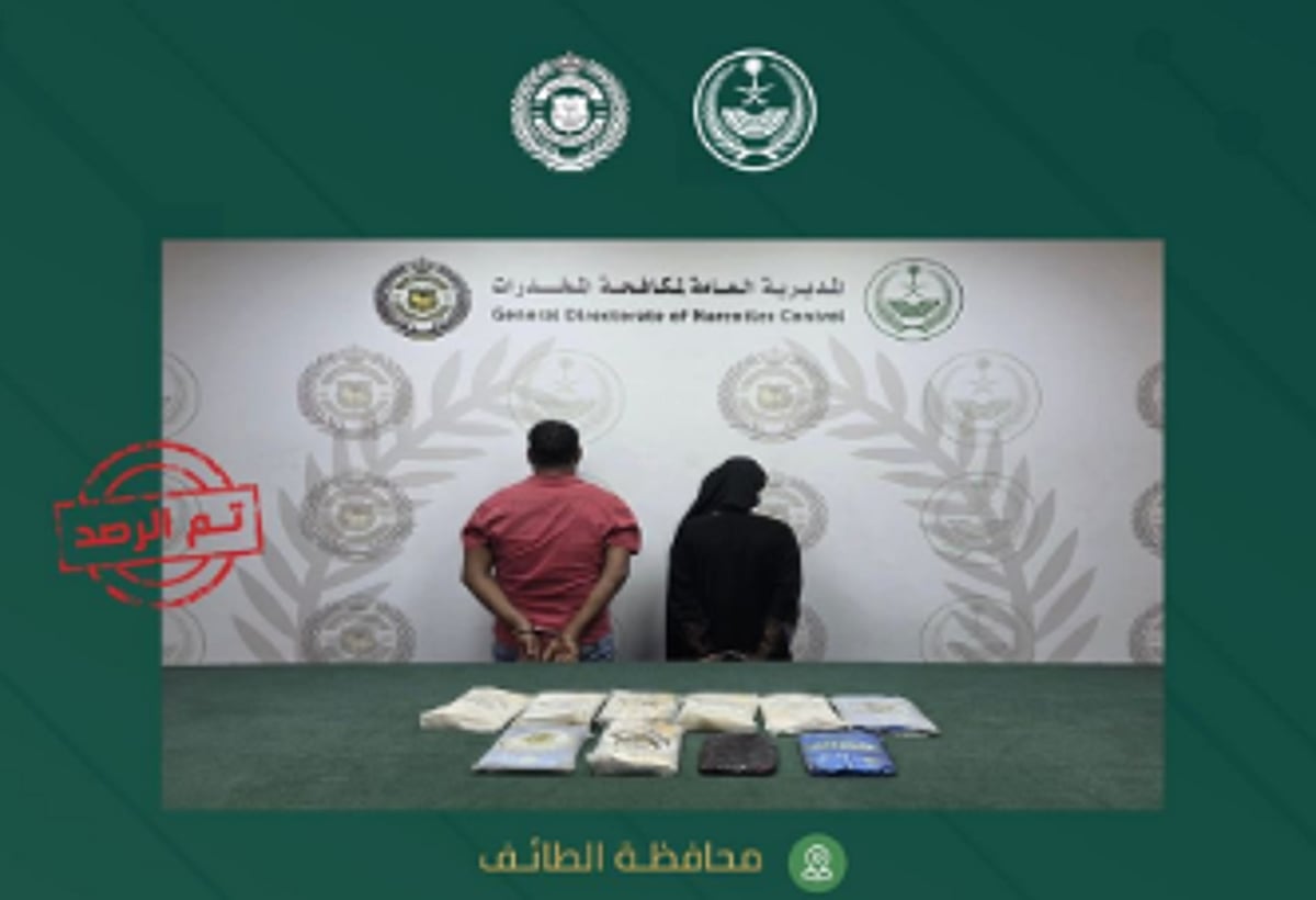 أعلنت المديرية العامة لمكافحة المخدرات القبض على مقيم من الجنسية الإيرترية ومخالفة لنظام أمن الحدود من الجنسية الإثيوبية بمحافظة الطائف لترويجهما (11) كيلوجراما من مادة الحشيش المخدر.