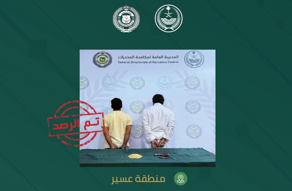 أعلنت المديرية العامة لمكافحة المخدرات القبض على مواطنين بمنطقة عسير لترويجهما (1.251) قرصًا من مادة الإمفيتامين المخدر.