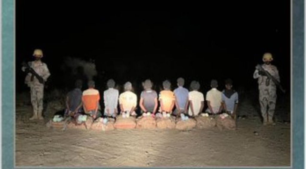 ألقت الدوريات البرية لحرس الحدود في قطاع الربوعة، بمنطقة عسير، القبض على 10 مخالفين لنظام أمن الحدود من الجنسية الإثيوبية، لتهريبهم 207 كيلوجرامات من نبات القات المخدر.