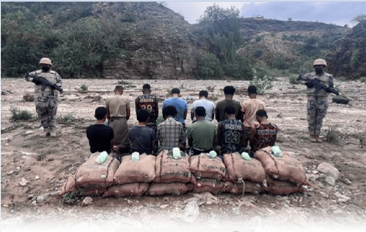 #حرس_الحدود بمنطقة جازان يقبض على (12) مخالفًا لنظام أمن الحدود لتهريبهم (180) كيلوجرامًا من نبات القات المخدر.#الحرب_على_المخدرات#بالمرصاد pic.twitter.com/x4teuFg3v0