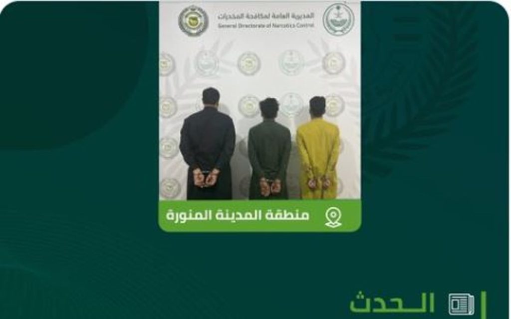 ألقت المديرية العامة لمكافحة المخدرات، القبض على 3 مقيمين من الجنسية الباكستانية بمنطقة المدينة المنورة، لترويجهم مادة الميثامفيتامين المخدر (الشبو).
