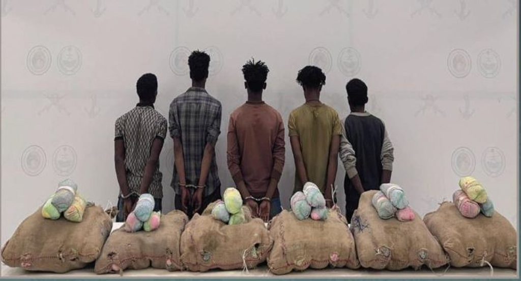 ألقت الدوريات البرية لحرس الحدود في قطاع الدائر بمنطقة جازان من القبض على 5 مخالفين لنظام أمن الحدود من الجنسية الاثيوبية، لتهريبهم 108 كيلوجرامات من نبات القات المخدر.