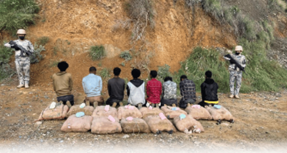أعلنت الدوريات البرية لحرس الحدود في قطاع الدائر بمنطقة جازان، القبض على 8 مخالفين لنظام أمن الحدود من الجنسية الإثيوبية، لتهريبهم 160 كيلوجرامًا من نبات القات المخدر.