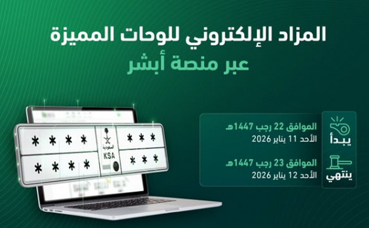 وأشار «المرور السعودي» عبر حسابه بمنصة التواصل الاجتماعي «إكس»، إلى أن المزاد يتم طرحه عبر منصة أبشر التي تمكّن الراغبين في شراء اللوحات المميزة من المشاركة في المزاد إلكترونيًا.