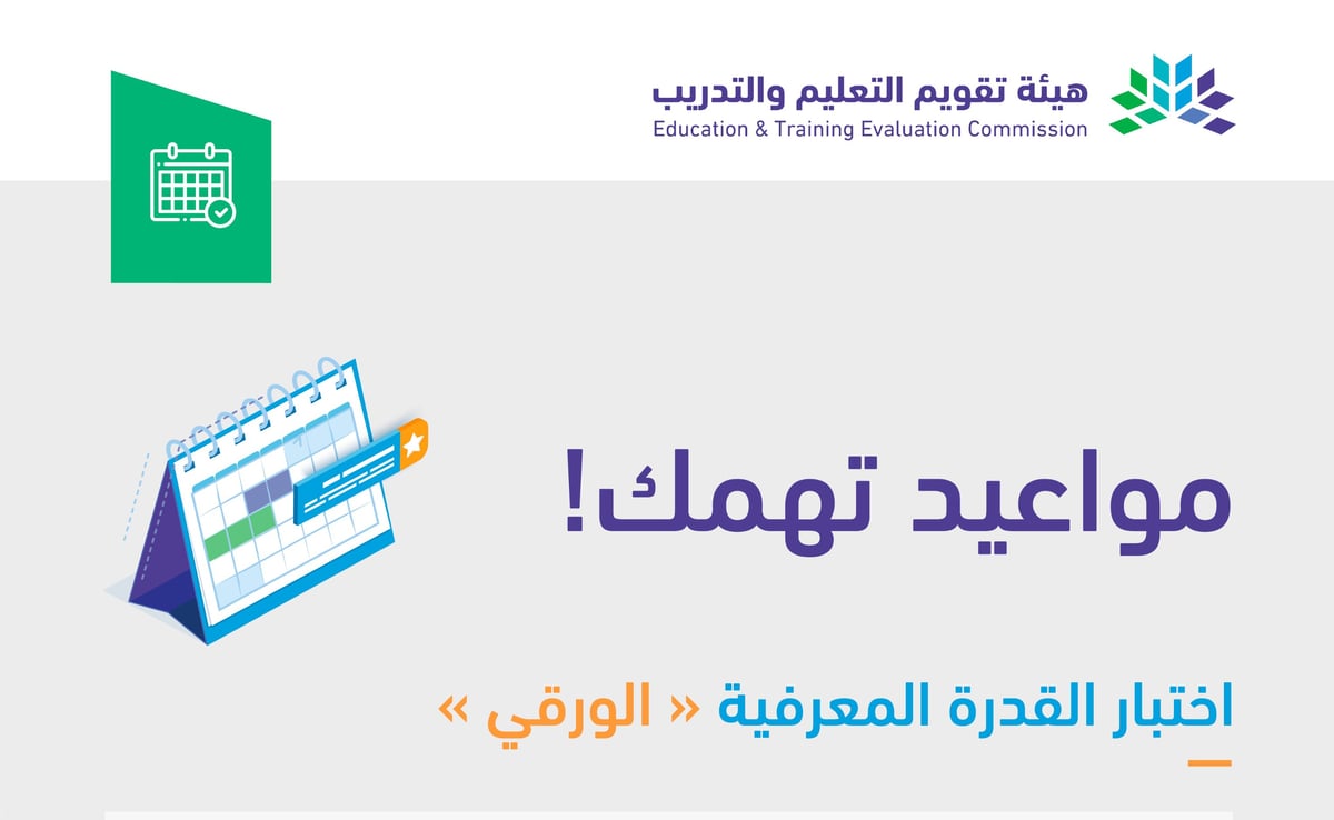 حددت هيئة تقويم التعليم والتدريب موعد التسجيل في اختبار القدرة المعرفية الورقي، وموعد عقده خلال 2024، حيث يشترط اختبار القدرة المعرفية لعدد من الجهات الحكومية للتعين أو الترقيات.