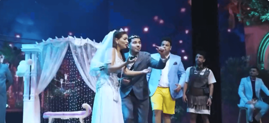 المسرحية بطولة مي عز الدين، وبيومي فؤاد، ومحمد أنور، وسليمان عيد ومصطفى غريب وعدد آخر من الفنانين، وتدور أحداثها حول عروسين اكتشفا يوم زفافهما أنهما لن يصلحا لاستمرار هذا الزواج، وفق “الإخبارية”.