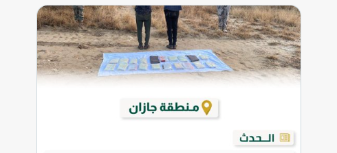 ألقت الدوريات البرية لحرس الحدود في قطاع العارضة بمنطقة جازان، القبض على مخالفين لنظام أمن الحدود من الجنسية الإثيوبية، لتهريبهما 21 كيلوجرامًا من مادة الحشيش المخدر.
