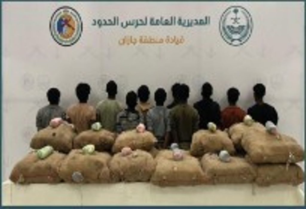 ألقت الدوريات البرية لحرس الحدود في قطاع الدائر بمنطقة جازان القبض على (11) مخالفًا لنظام أمن الحدود من الجنسية الإثيوبية، لتهريبهم (324) كيلوجراما من نبات القات المخدر.