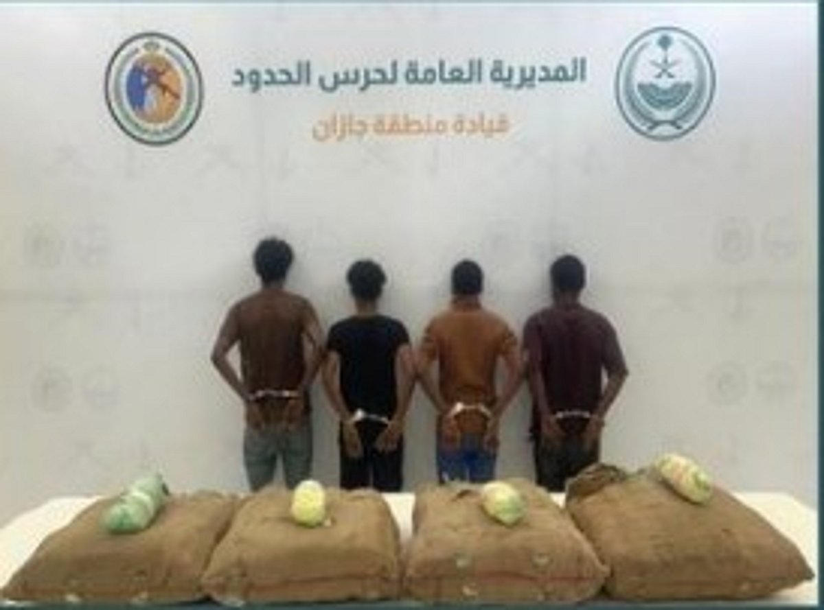 قبضت الدوريات البرية لحرس الحدود في قطاع الدائر بمنطقة جازان على (4) مخالفين لنظام أمن الحدود من الجنسية الإثيوبية، لتهريبهم (72) كيلوجرامًا من نبات القات المخدر.