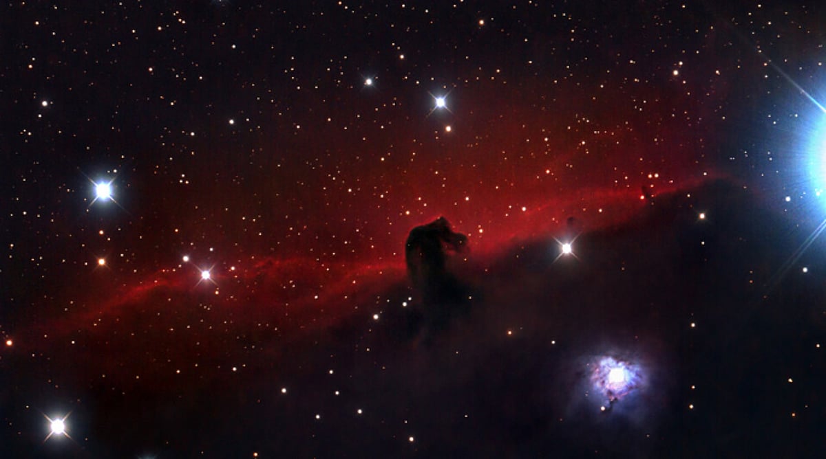 ويُعدّ سديم “رأس الحصان”، أحد أشهر السدم الواقعة في كوكبة الجبار، ويبعد عن الأرض ما يقارب 1500 سنة ضوئية, وهو سديمٌ مظلمٌ يتكوّن من غبارٍ كوني كثيف يحجب ضوء النجوم، ولا يمكن رصده بالعين المجردة، و يتطلّب استخدام تلسكوبات ذات قدراتٍ عالية وكاميرات فلكية مخصّصة لإظهار تفاصيله ضمن السدم المضيئة المحيطة به.