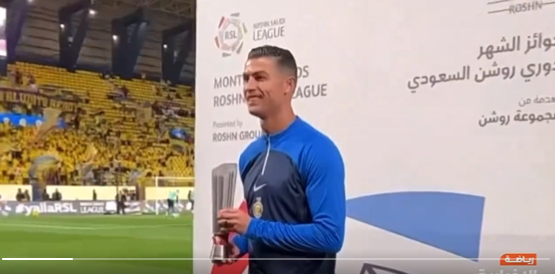 تسلم جائزة النجم البرتغالي كريستيانو رونالدو جائزة لاعب شهر ديسمبر في دوري روشن، اليوم قبيل انطلاق مباراة النصر والفتح.
