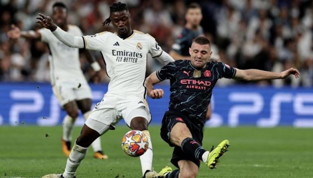 سجل البرازيلي رودريجو، هدف تقدم ريال مدريد في الشوط الأول من اللقاء، بالدقيقة الثانية عشر من زمن المباراة، بعد متابعته لكرة مرتدة من إيدرسون حارس مانشستر سيتي.