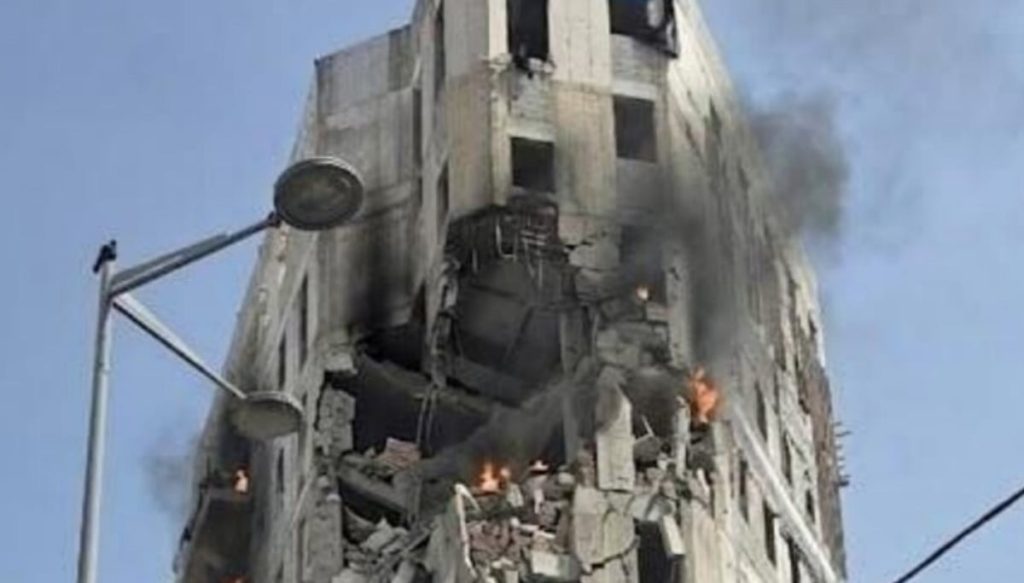 أصيب مبنى في بني براك للمرة الثانية وسط دولة الاحتلال؛ بهجمات إيرانية.