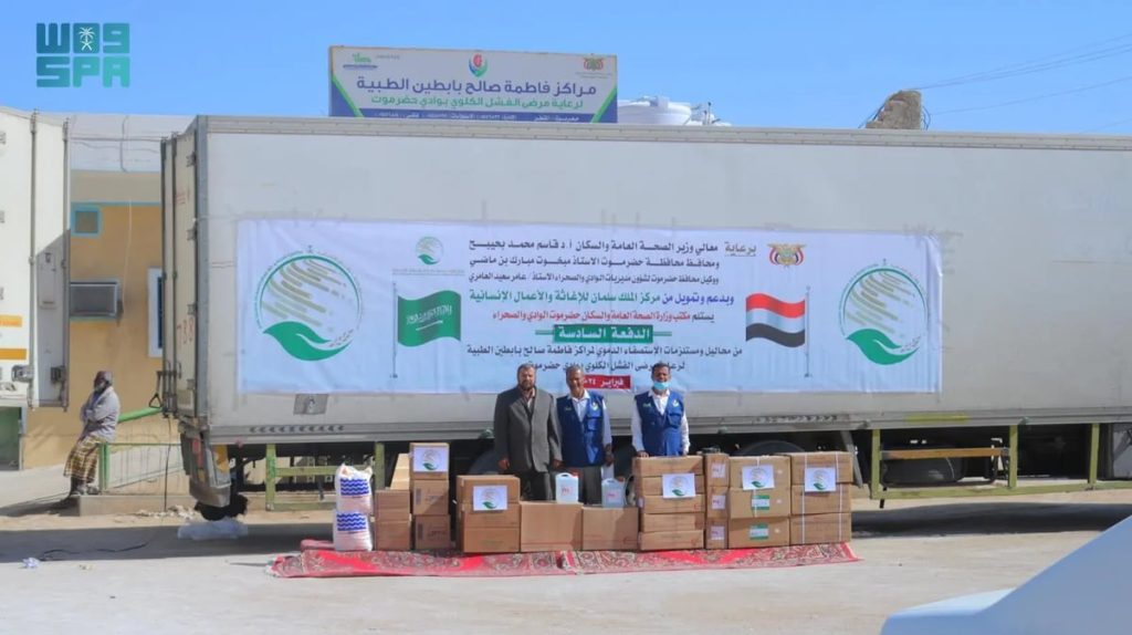 سلّم مركز الملك سلمان للإغاثة والأعمال الإنسانية أمس الأول، الدفعة السادسة من محاليل ومستلزمات الاستصفاء الدموي لمراكز فاطمة صالح بابطين الطبية لرعاية مرضى الفشل الكلوي في مديرية القطن بمحافظة مأرب، تكفي لـ 3.500 جلسة استصفاء دموي.