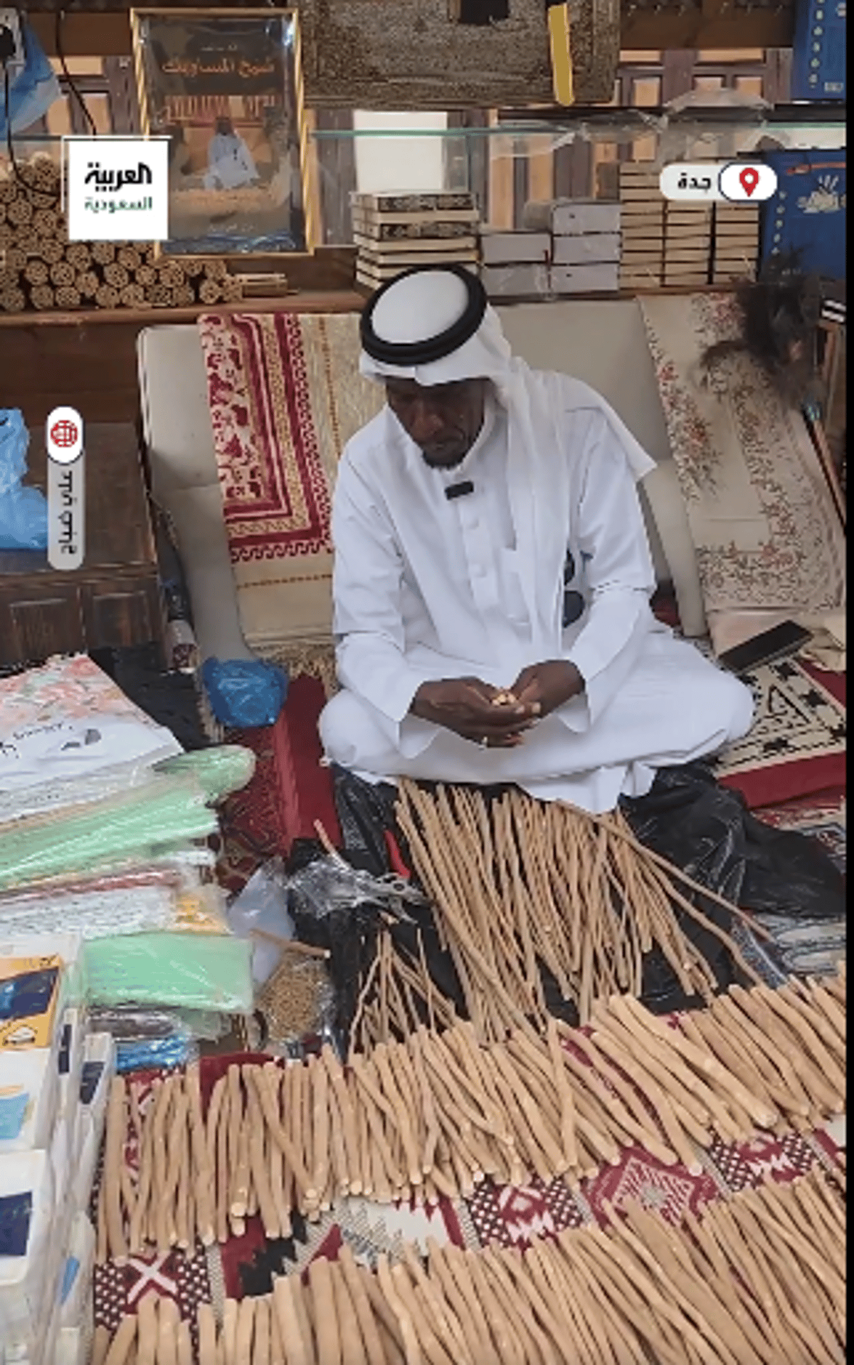 روى حسين العبدلي قصته مع بيع المسواك في جدة القديمة بعد أن تحول إلى وجهة مطلوبة للمشترين من مختلف الفئات العمرية.