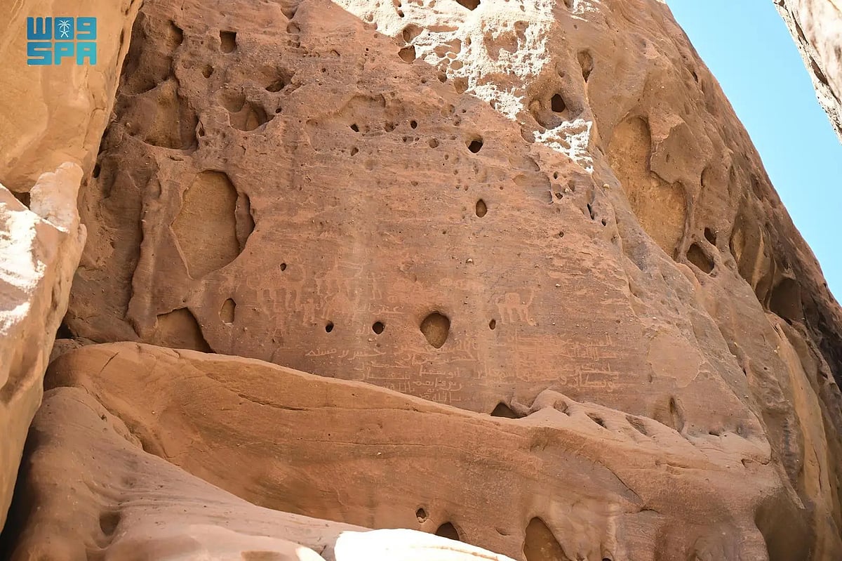 وتضم مواقع متعددة من العُلا آلاف النقوش والكتابات الصخرية التي تعود إلى عصور زمنية متعاقبة، عكست انتقال الإنسان من التعبير الرمزي القائم على الرسم وتسجيل المشاهد اليومية والمعتقدات، إلى التدوين بالحرف المنظَّم، في مسارٍ تاريخي يُبرز تطوّر اللغة العربية بوصفها أداة للتواصل وحفظ المعرفة، وتشمل هذه الشواهد نقوشًا لحيانية ونبطية ونماذج عربية مبكرة، شكّلت حلقات متصلة في تاريخ تشكّل اللغة.