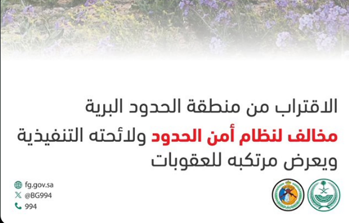 دعت المديرية العامة لحرس الحدود هواة الرحلات البرية، والمتنزهين، والباحثين عن نبات الكمأ (الفقع) إلى الالتزام بنظام أمن الحدود ولائحته التنفيذية، وعدم دخول منطقة الحدود البرية أو الاقتراب منها.