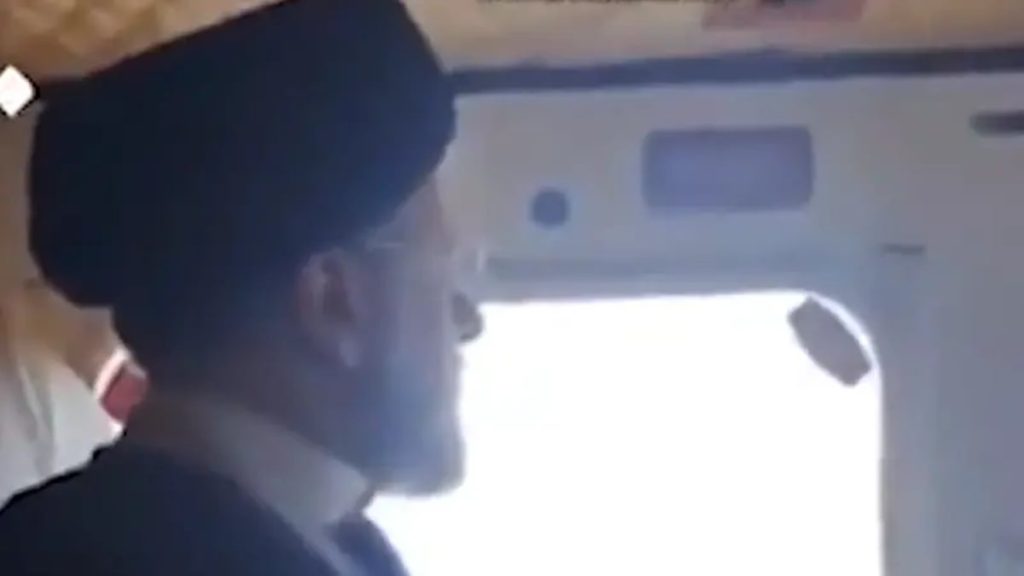 أظهر مقطع الفيديو رئيسي وهو يطل من نافذة المروحية بينما كان يرافقه وزير الخارجية حسين أمير عبداللهيان قبل تعرض المروحية لحادث.