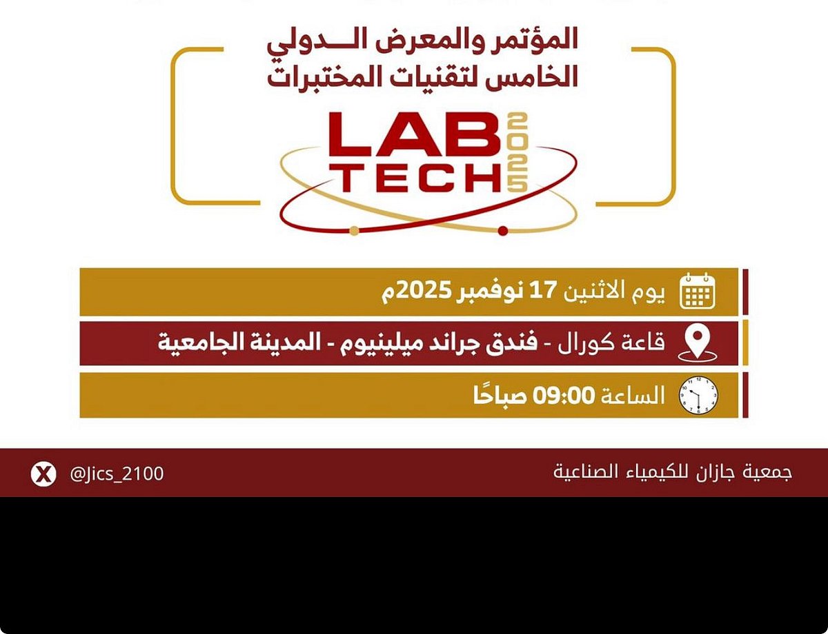 يشهد المؤتمر والمعرض الدولي الخامس ( 2025 LabTech )، الذي تنظمه جمعية جازان للكيمياء الصناعية بشراكة استراتيجية مع جامعة جازان، عقد مجموعة من الدورات التدريبية يومي 15 و 16 نوفمبر 2025، في مجالات تقنيات استكشاف الأعطال المتقدمة للأجهزة التحليلية مثل GC و HPLC و ICP، وأفضل الممارسات لتقليل الفروقات بين بيانات التحليل المخبري والمحللات عبر الإنترنت