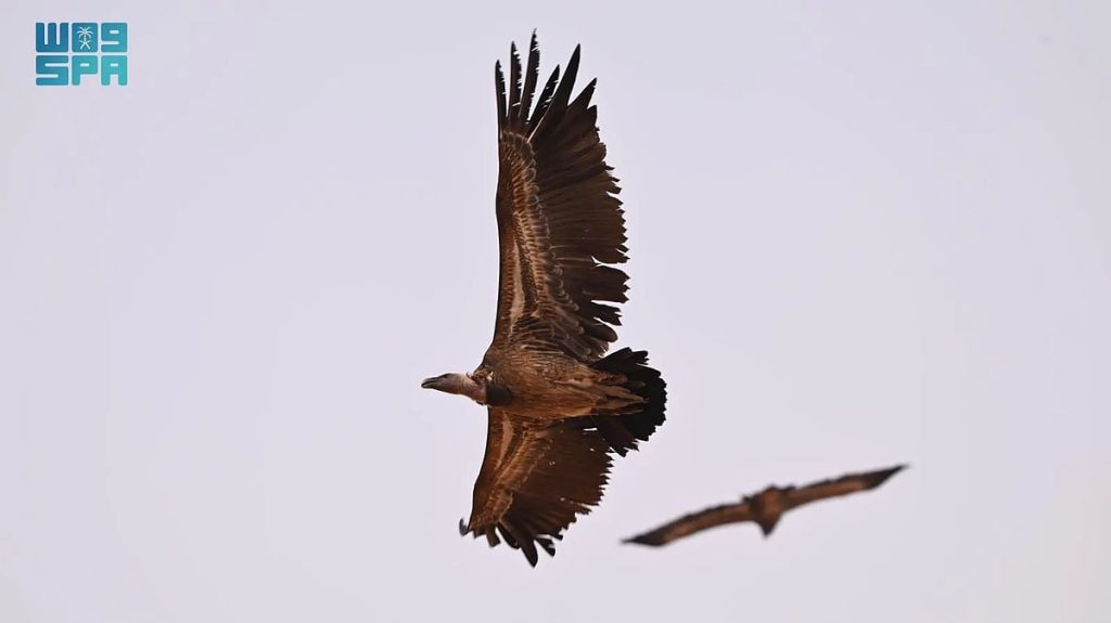 أعلنت هيئة تطوير محمية الملك عبدالعزيز الملكية عن نجاحها في رصد وتوثيق “نسر روبّل” (Gyps rueppellii) داخل نطاق المحمية، وذلك في حدثٍ بيئيّ وتاريخيّ بارز؛ حيث يُعد هذا الرصد الثالث الموثق رسميًا على المستوى الوطني، والأول من نوعه على مستوى منطقتي وسط وشرق المملكة.