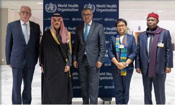 التقى أعضاء اللجنة الوزارية المكلفة من القمة العربية الإسلامية المشتركة غير العادية، برئاسة الأمير فيصل بن فرحان وزير الخارجية، اليوم في مدينة جنيف السويسرية، بالمدير العام لمنظمة الصحة العالمية تيدروس أدهانوم.