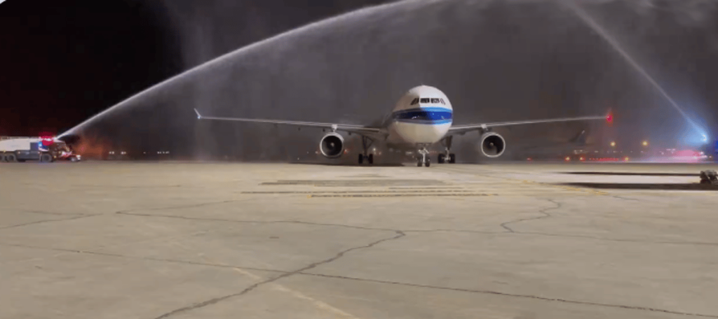 احتفل مطار الملك خالد الدولي بوصول أول طائرة من العاصمة الصينية بكين بعد تدشين المسار الجوي الجديد بين الرياض وبكين.