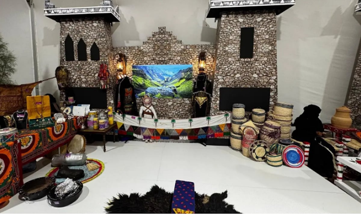 ويبرز في الجناح المسار التخيلي الذي يربط بين الحاضر والماضي، حيث يرافق الزوار جملان بلونين مختلفين، يجسد كل منهما جانبًا من تاريخ المنطقة وتراثها، ليعيش الزائر تجربة غنية وممتعة.