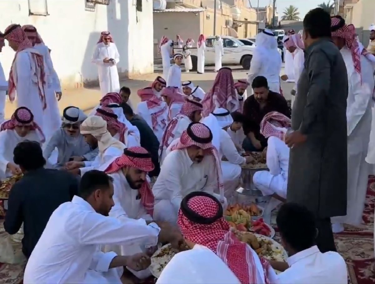 يتجمع أهالي حي الفيصلية برفحاء بعد صلاة العيد مباشرة في وسط الطرق وسط المنازل لتناول طعام الإفطار بشكل جماعي في عادة اجتماعية تجاوزت الخمسة عقود.