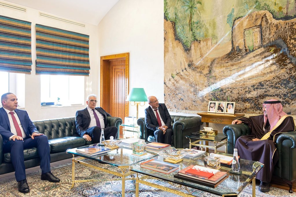 حضر الاستقبال، سفير دولة فلسطين المعيّن لدى المملكة مازن محمد راتب غنيم.