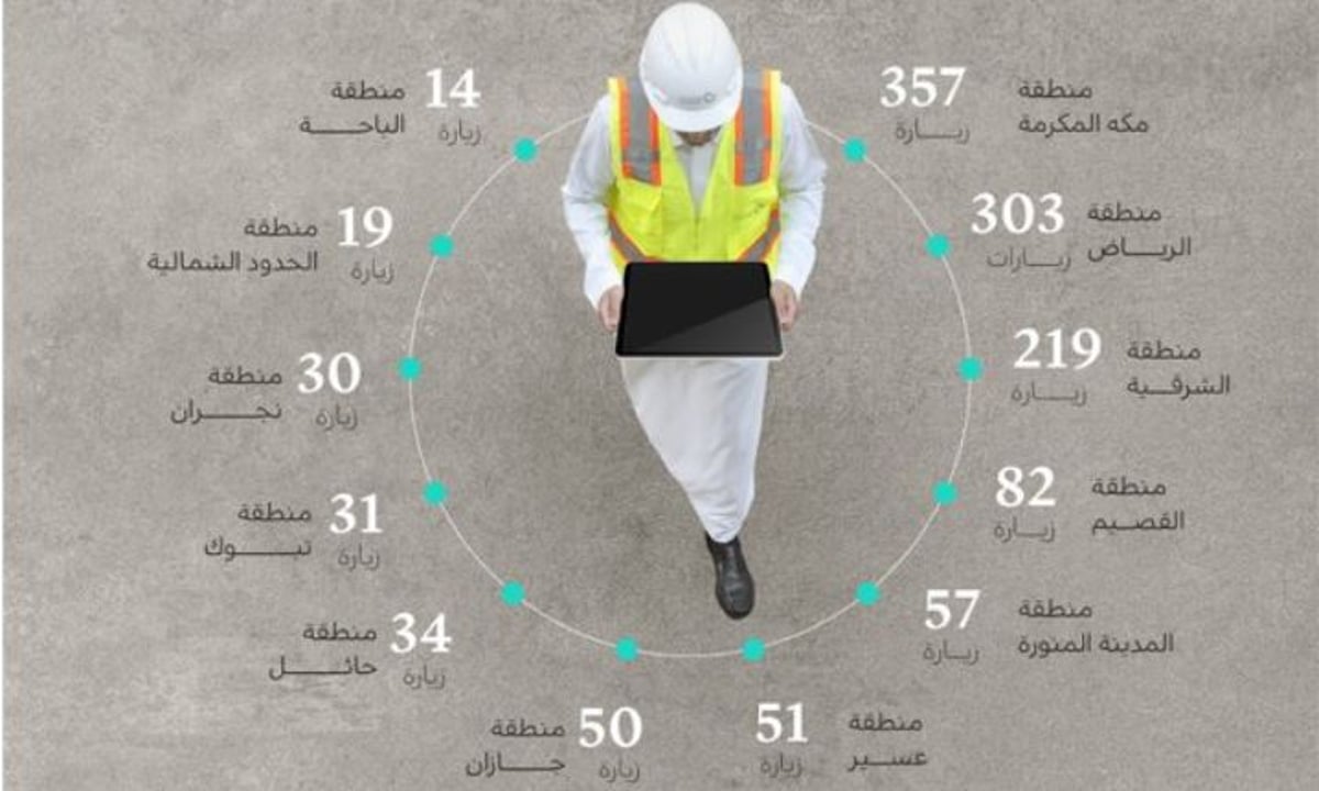 وأوضح المتحدث الرسمي للوزارة جراح الجراح، أن الزيارات الميدانية المُنفّذة خلال الشهر الماضي شملت 357 زيارة على المصانع في منطقة مكة المكرمة، و 303 زيارات في منطقة الرياض، و 219 زيارة في المنطقة الشرقية، إضافة إلى 82 زيارة في منطقة القصيم، و 57 زيارة في منطقة المدينة المنورة، و 51 زيارة في منطقة عسير، و 50 زيارة في منطقة جازان، و 34 زيارة في منطقة حائل، و31 زيارة على المصانع في منطقة تبوك، فيما نفذت 30 زيارة على مصانع منطقة نجران، و 19 زيارة في منطقة الحدود الشمالية، و14 زيارة في منطقة الباحة.