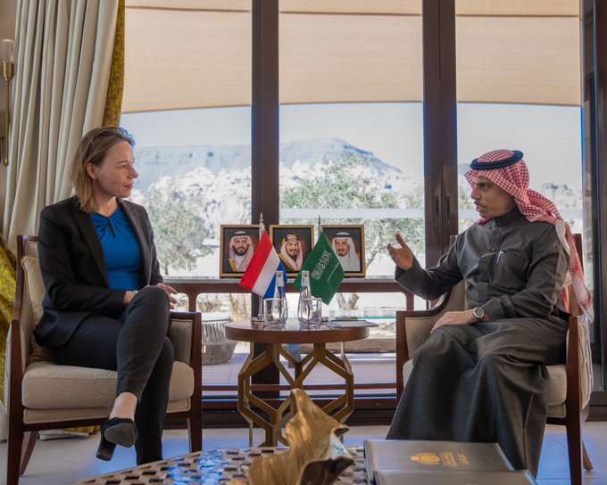 وبحث الأمير فيصل بن فرحان والوزيرة الهولندية أيضا، العلاقات الثنائية بين البلدين وسبل تعزيزها في مختلف المجالات، وتطورات الأحداث الإقليمية والدولية.