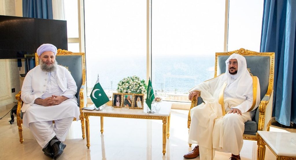 التقى وزير الشؤون الإسلامية والدعوة والإرشاد الشيخ الدكتور عبداللطيف بن عبدالعزيز آل الشيخ، اليوم الجمعة 25 ربيع الآخر 1447هـ، في محافظة جدة، بعضو مجلس الشيوخ بجمهورية باكستان الإسلامية الشيخ نور الحق قادري، الذي يزور المملكة حاليًا.