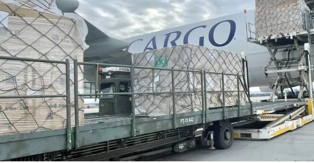 يأتي ذلك ضمن مساعدات المملكة للشعب الأوكراني, وتشتمل الحمولة على مولدات وأجهزة كهربائية، بوزن إجمالي 70 طناً.