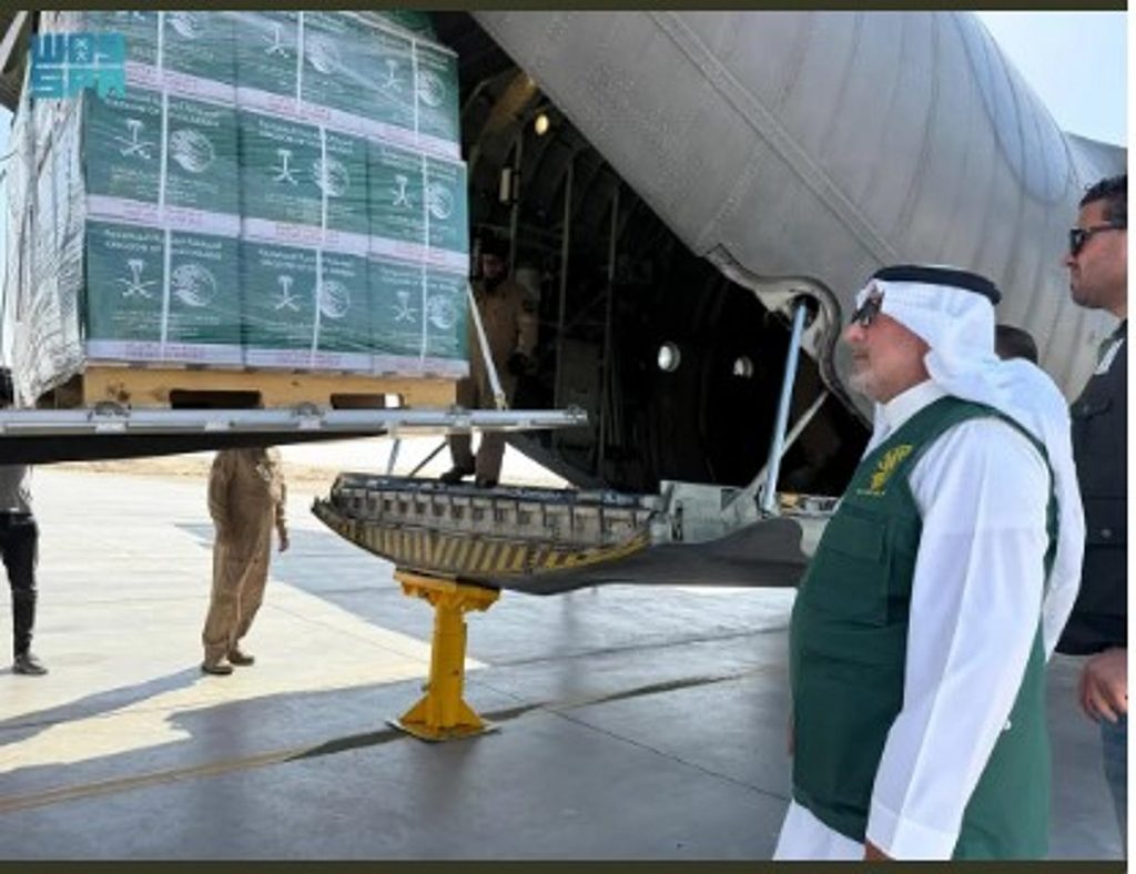 وتحمل الطائرة السعودية الـ(70) على متنها سلالًا غذائية وحقائب إيوائية، تمهيدًا لنقلها إلى المتضررين من الشعب الفلسطيني الشقيق داخل قطاع غزة.