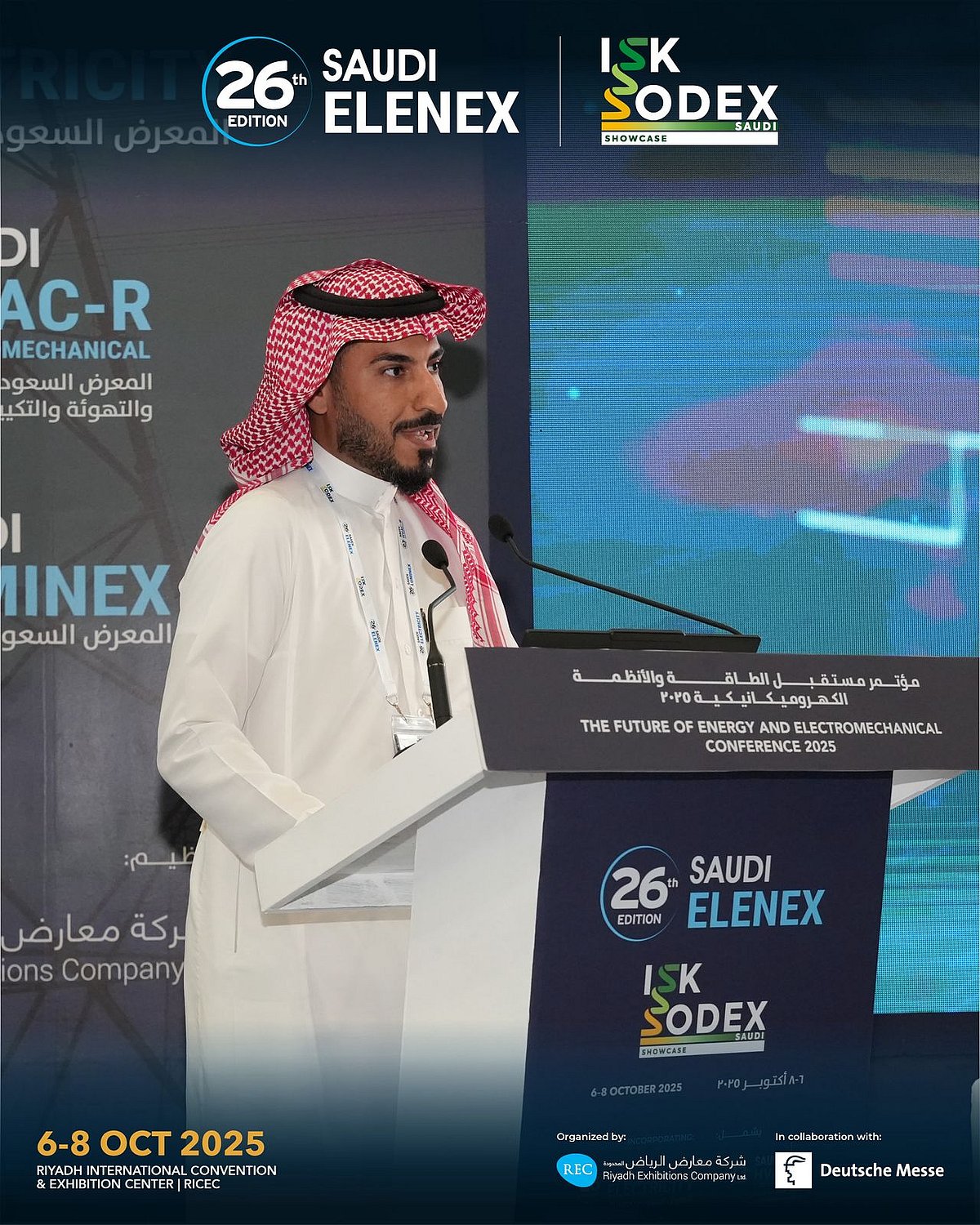 انطلقت أعمال معرض ومؤتمر السعودية للكهرباء والطاقة “Saudi Elenex 2025” في مركز الرياض الدولي للمؤتمرات والمعارض، وسط حضور واسع من الخبراء والمختصين في مجالات الطاقة والكهرباء والتكييف والإنارة. وشهد اليومان الأول والثاني انعقاد ست جلسات حوارية متخصصة ضمن مؤتمر مستقبل الطاقة والحلول الكهروميكانيكية 2025، ناقشت مستقبل الطاقة النظيفة وكفاءة المباني الذكية وتطبيقات الثورة الصناعية الرابعة في كفاءة التشغيل والاستدامة.