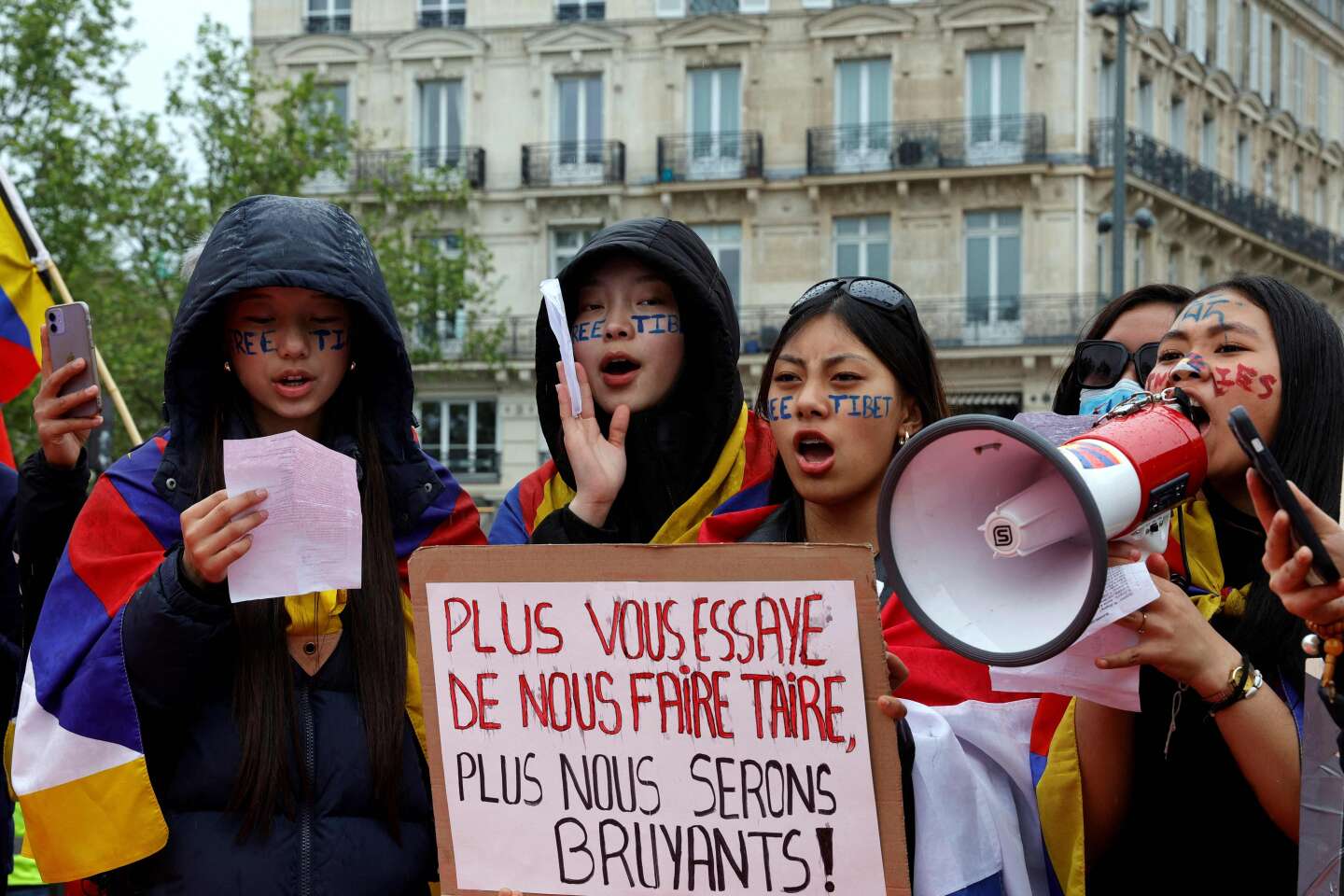 ومن خلال الميكروفون، أدان ناشط شاب بشكل خاص سياسة الإدماج القسري للأطفال التبتيين، الذين تم إرسالهم إلى مدارس داخلية بعيدة عن عائلاتهم، ومصير البانتشن لاما، الرجل الثاني في البوذية التبتية، الذي توفي عام 1995، عن عمر يناهز 6 سنوات. لسنوات عديدة، أدى بناء السدود إلى نزوح السكان وإغلاق التبت أمام الزوار الأجانب ـ بما في ذلك الصحافيين ـ فضلاً عن أهل التبت في المنفى. “السيد الرئيس إيمانويل ماكرون، نطلب منك بشدة أن تتحلى بالشجاعة السياسية للتحدث عن التبت مع نظيره الصيني السيد شي جين بينغ”.وقالت في ختام هذه الرسالة المفتوحة للرئيس الفرنسي.