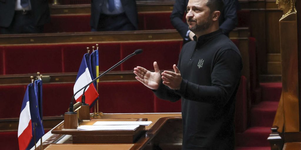 صورة الغلاف: الرئيس الأوكراني فولوديمير زيلينسكي في الجمعية الوطنية في باريس في 7 يونيو 2024. توماس باديلا / ا ف ب