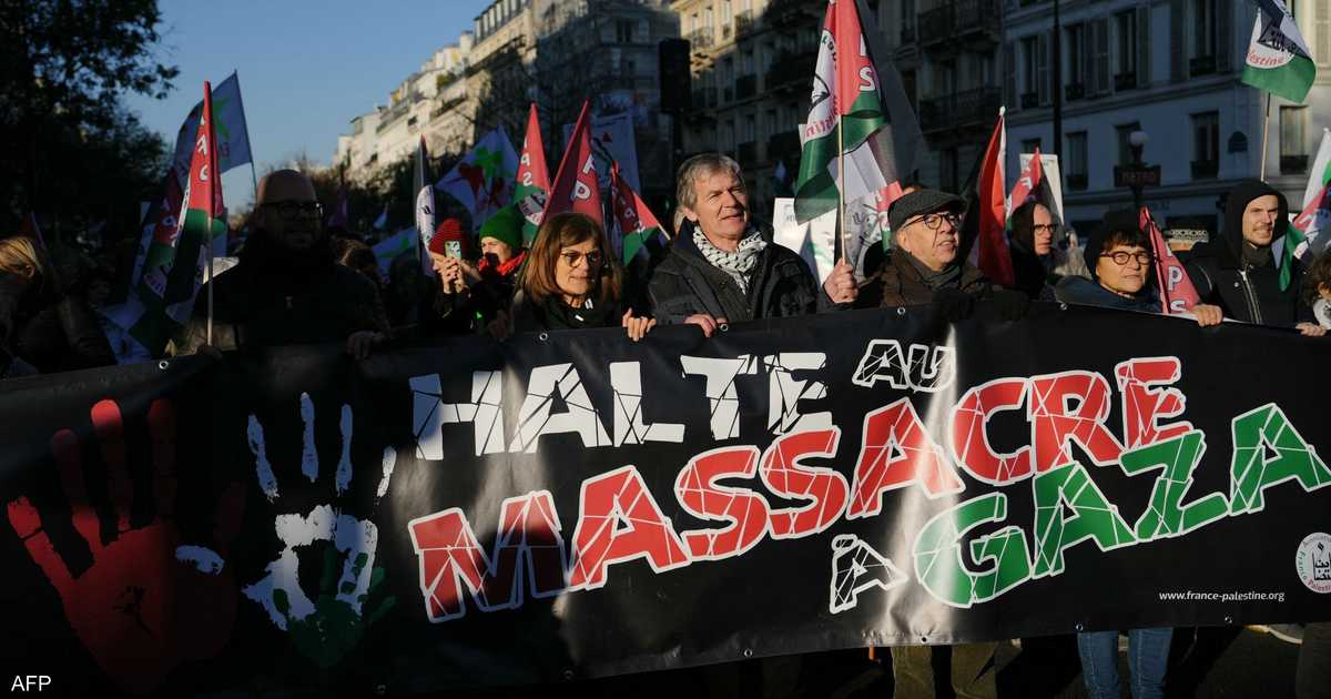 وشارك 1800 شخص في المسيرة الباريسية، بحسب الشرطة، وأطلقت في التحرّك هتافات على غرار “الوقف الفوري للقصف” و”إسرائيل تقتل أطفال فلسطين”، وفق ما أفادت مراسلة وكالة فرانس برس.