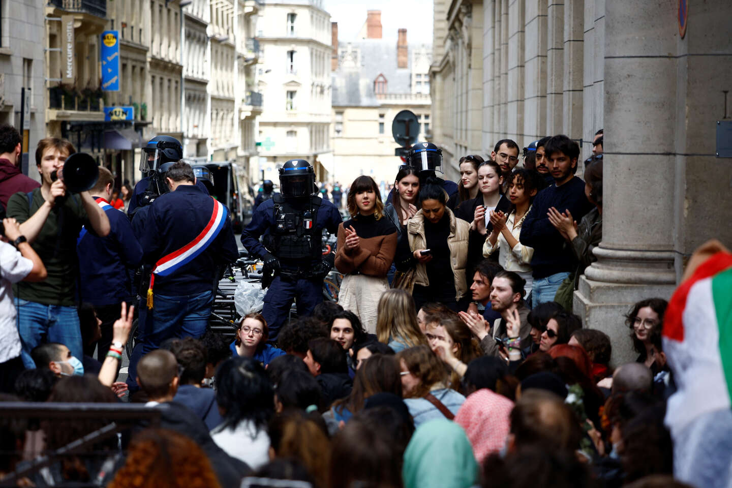 ومنذ منتصف النهار، تجمع حوالي 150 شخصًا، من بينهم نواب من حزب فرنسا البائسة – لويس بويارد (فال دو مارن)، وتوماس بورتيس (سين سان دوني)، ورودريجو أريناس (باريس) – أمام جامعة السوربون، ثم ذلك الحين. ورفع الطلاب علمًا فلسطينيًا ضخمًا على طول الشارع وهم يهتفون “وقف إطلاق النار!” إسرائيل، القاتل، شريك السوربون! “. وفي بداية بعد الظهر، أخلت الشرطة المتظاهرين ثم قامت، في جامعة السوربون، بإخراج نحو خمسين طالبا من الخيام، وأحيانا عن طريق جرهم إلى الأرض، كما يتضح من مقاطع الفيديو المنشورة على شبكة التواصل الاجتماعي أقصى يسار الثورة الدائمة.