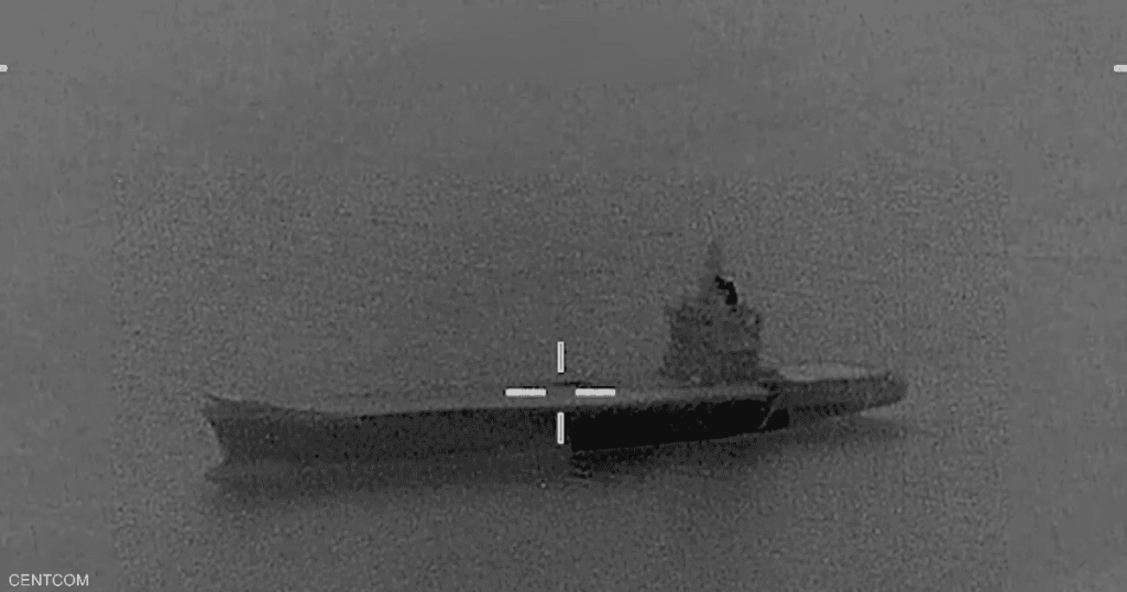 ويأتي الهجوم في وقت صرحت فيه القيادة المركزية الأميركية بأن “القوات الأميركية لا تتوانى عن مهمة إغراق البحرية الإيرانية بالكامل”.