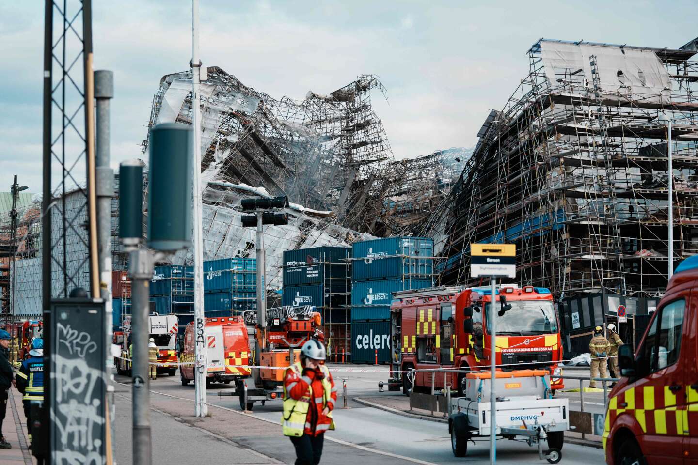 وانهار الهيكل باتجاه الجزء الداخلي من المبنى محدثا هزة كبيرة، بحسب صور نشرتها وسائل إعلام دنماركية. وقد تم وضع حاويات على طول هذه الواجهة لدعمها. “هناك خطر حدوث انهيارات أخرى”حذر تيم أولي سيمونسن، مدير التدخل في خدمات الطوارئ الدنماركية، خلال مؤتمر صحفي مرتجل.
