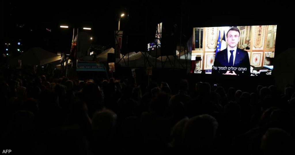 وقال ماكرون في كلمة عبر الفيديو بثّت خلال تجمع لأقارب الرهائن في تل أبيب إن “الأمة الفرنسية مصمّمة على أن يتم الإفراج عن كل الرهائن الذين أخذوا في الهجمات الإرهابية للسابع من أكتوبر. فرنسا لا تتخلى عن أبنائها. لذلك يجب أن نستأنف مرارا وتكرارا المفاوضات من أجل الإفراج عنهم”.