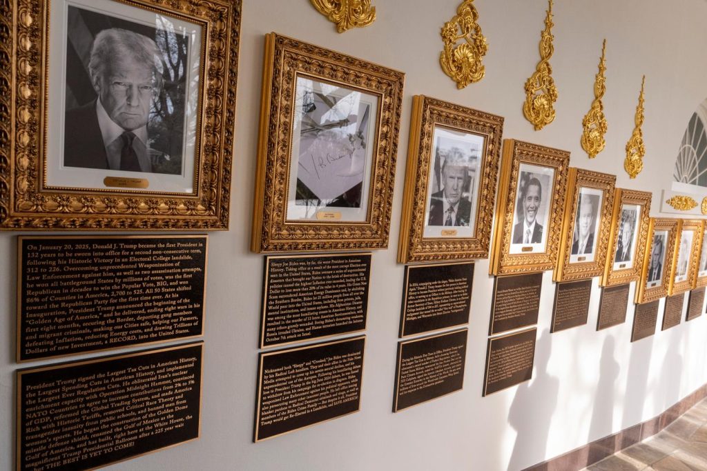 لوحة تمهيدية تُعلم الزائرين بوجود ممشى المشاهير الرئاسي “صممه وبناه الرئيس دونالد جيه ترامب تكريما للرؤساء السابقين، الطيبين والسيئين وما بينهما”. وقالت المتحدثة باسم البيت الأبيض كارولين ليفيت إن الرسائل كانت كذلك “أوصاف بليغة لكل رئيس” منها “كثير منها كتبها الرئيس مباشرة” ويوضح أيضًا أن إضافات دونالد ترامب ستبقى قائمة بمجرد انتهاء فترة ولايته.
