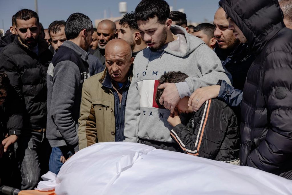 خلال جنازة الأخوين محمد وفهيم معمر اللذين قتلهما مستوطنون إسرائيليون متطرفون في اليوم السابق، في قريوت بالضفة الغربية المحتلة، 3 مارس 2026. لورانس جياي/ميوب عن فيلم “العالم”