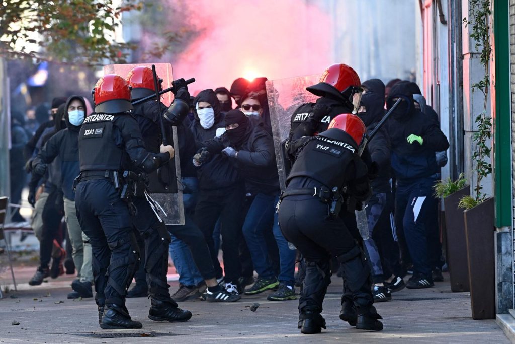 ومع اقتراب الذكرى الخمسين لوفاة فرانكو، تجمع عشرات الناشطين، الأحد، في ساحة مركزية في فيتوريا، قبل أن يظهر متظاهرون معارضون ملثمون، بمناسبة العيد الوطني.